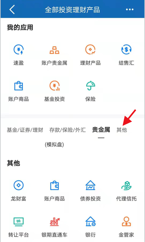 第三步:點(diǎn)“全部投資理財(cái)”后,在我的應(yīng)用下方靠右選擇“其他”