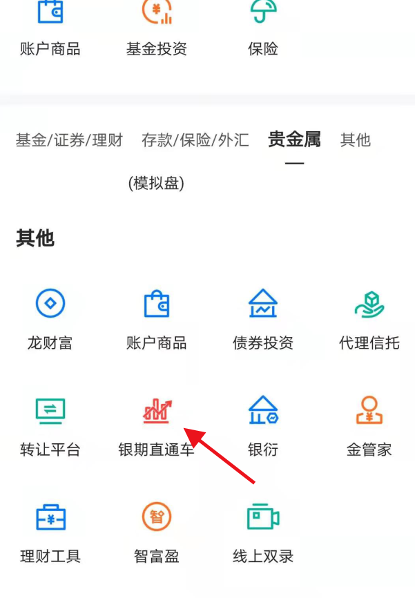 第四步:點(diǎn)開(kāi)“其他”在手機(jī)頁(yè)面最下側(cè)找到“銀期直通車(chē)”
